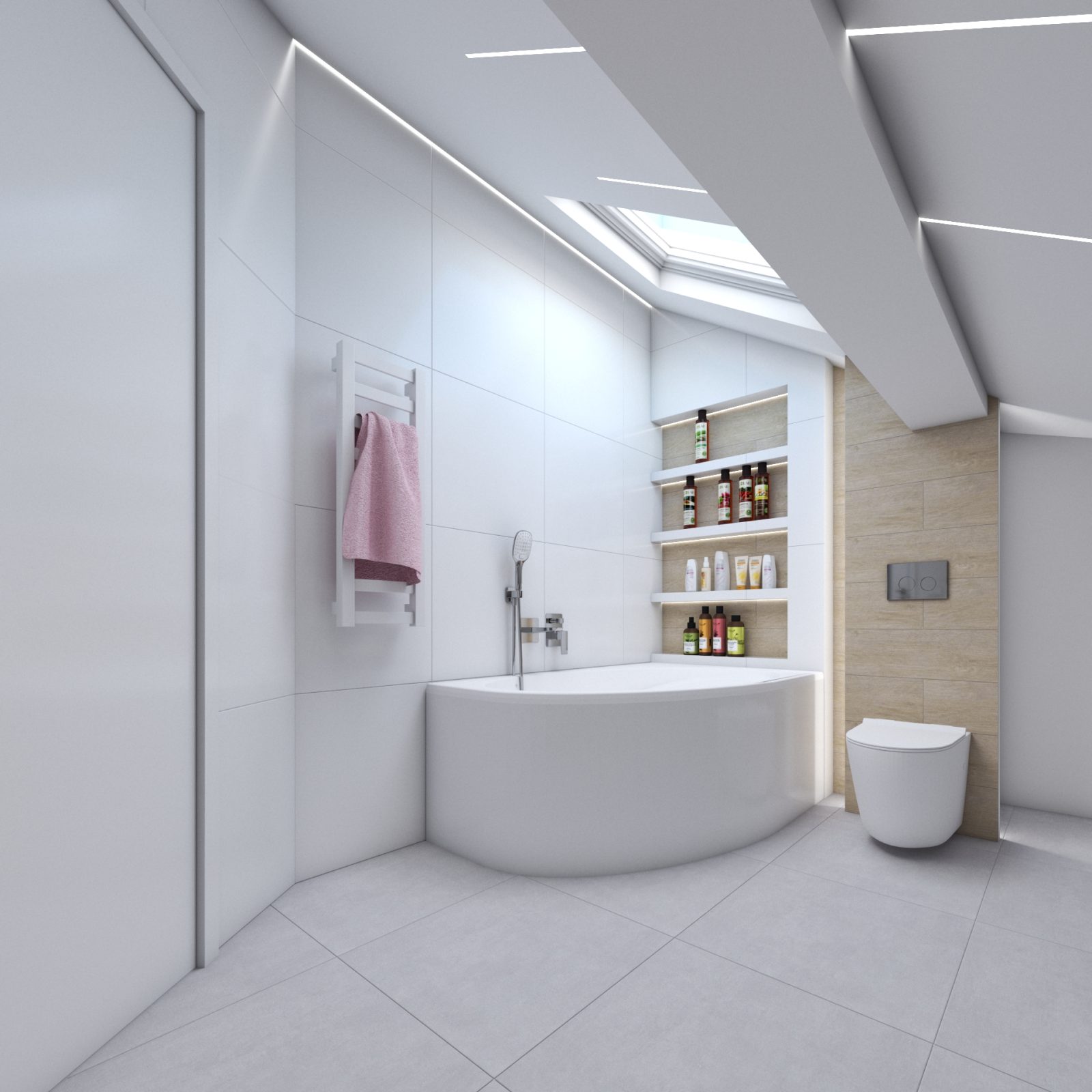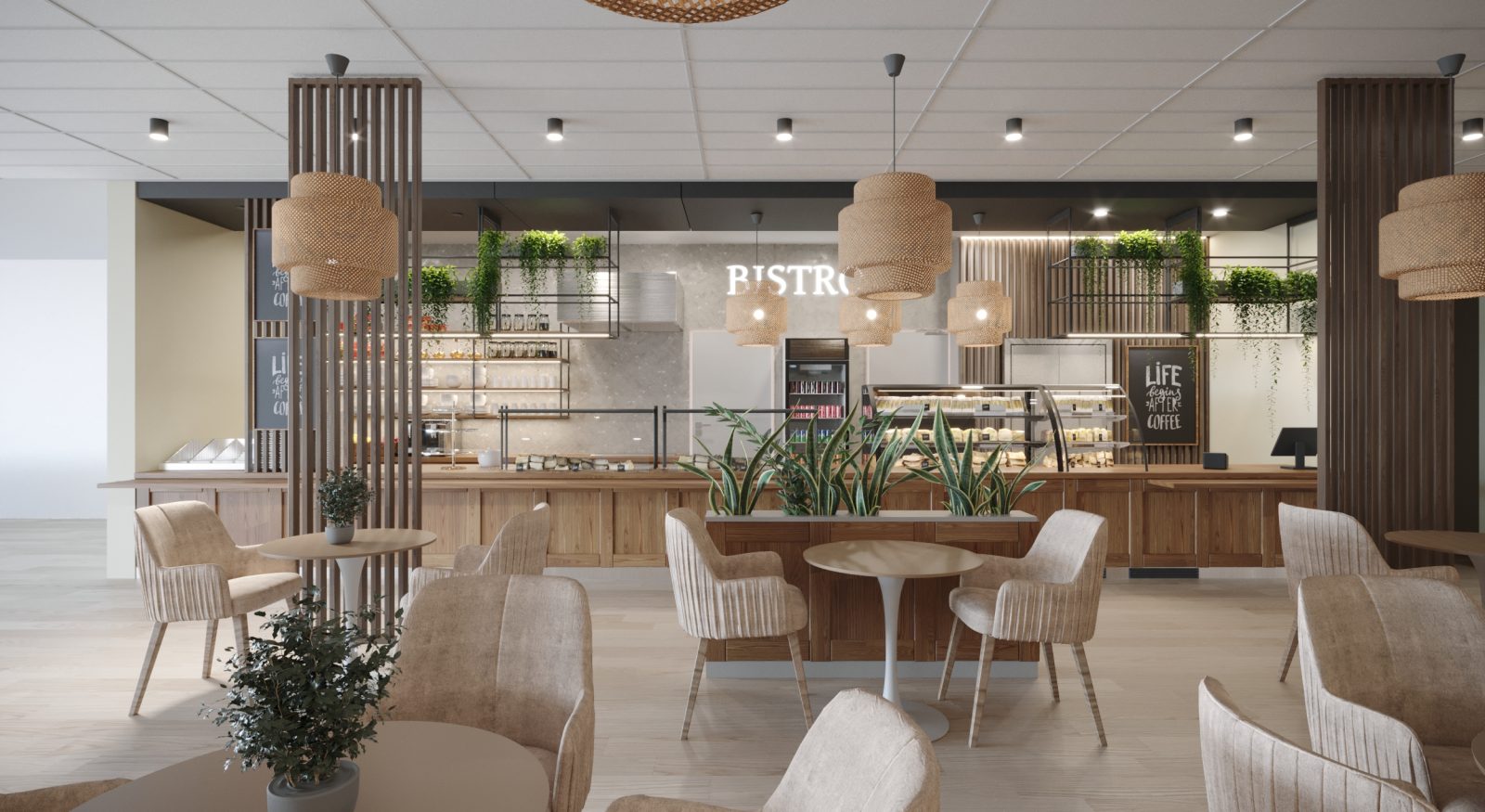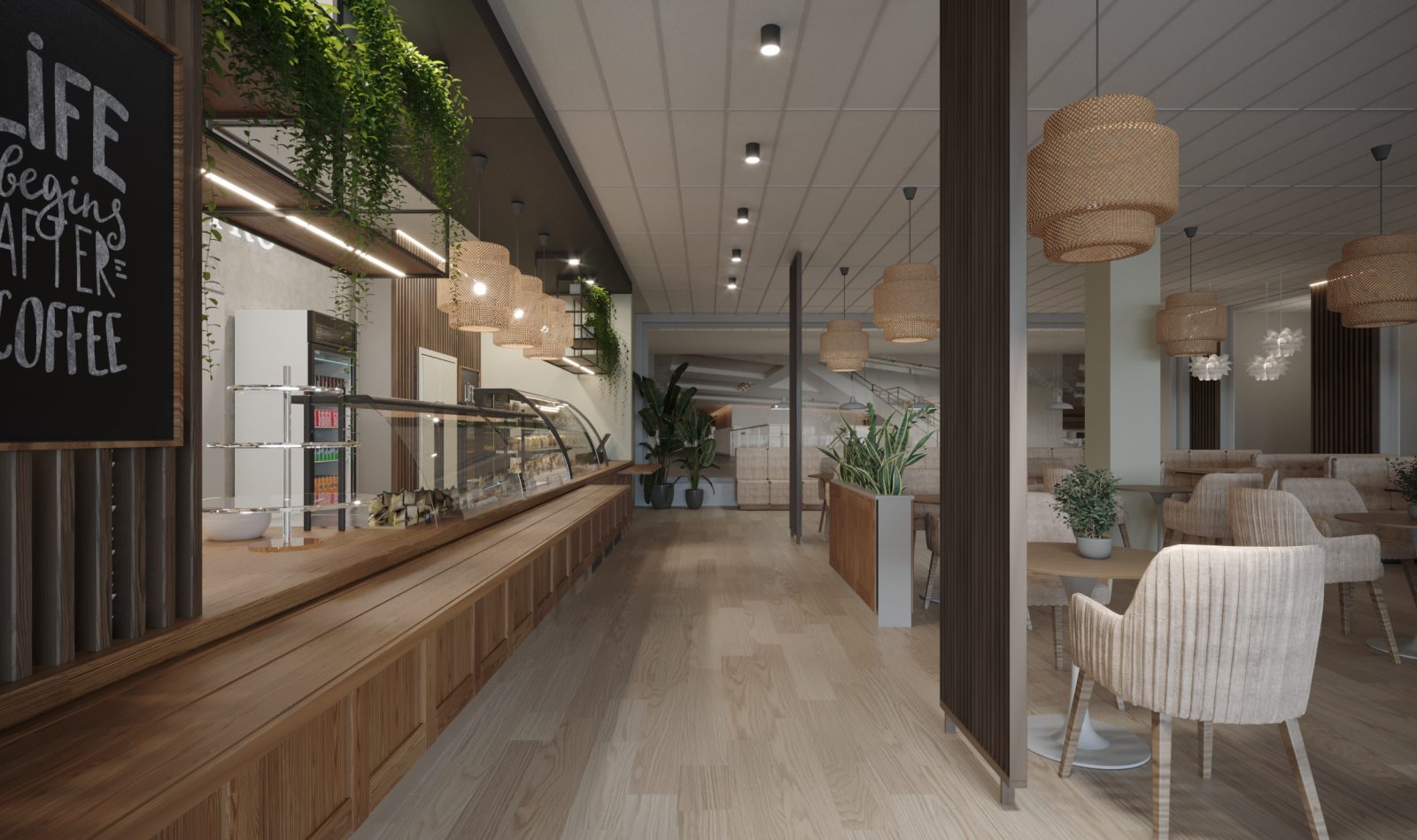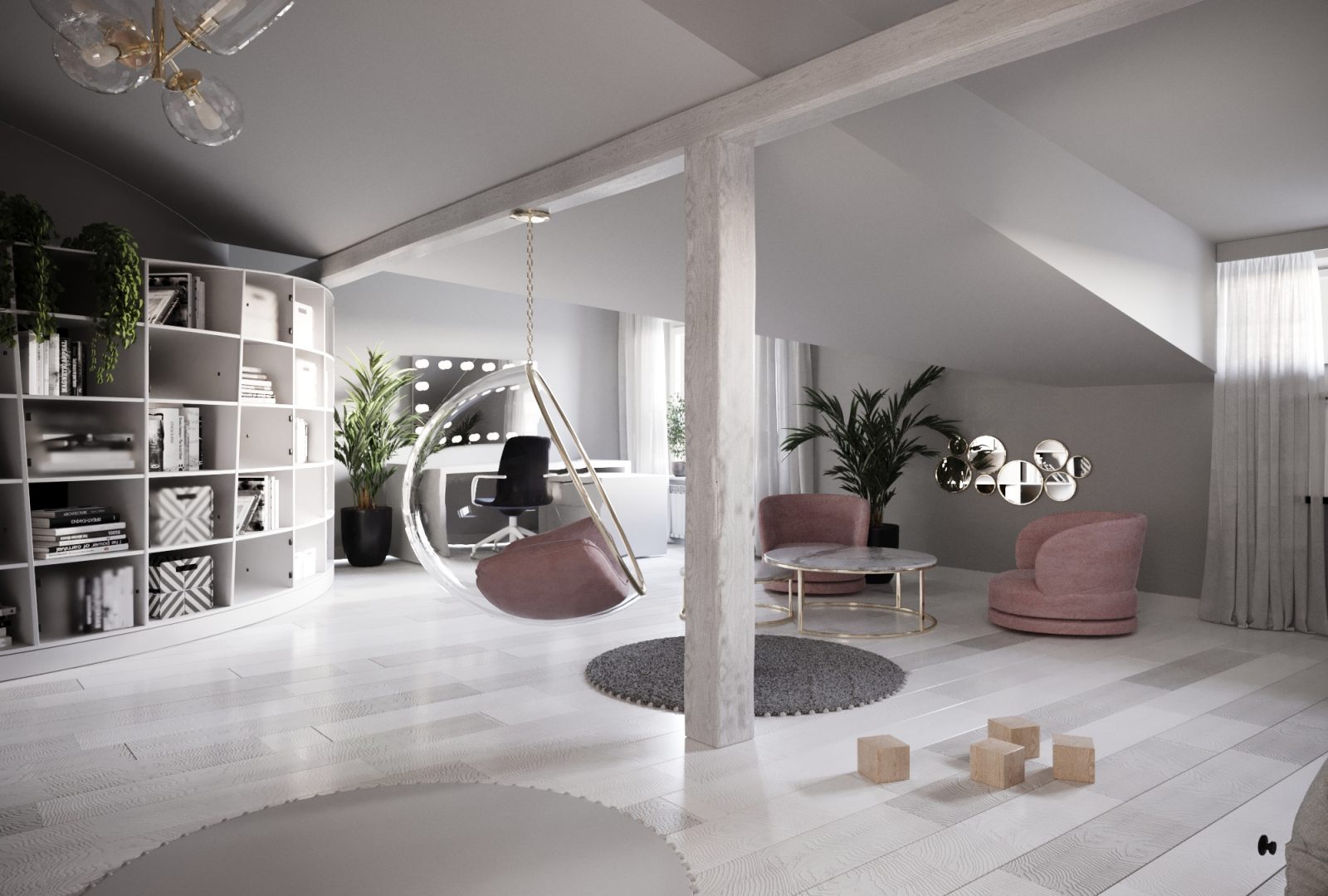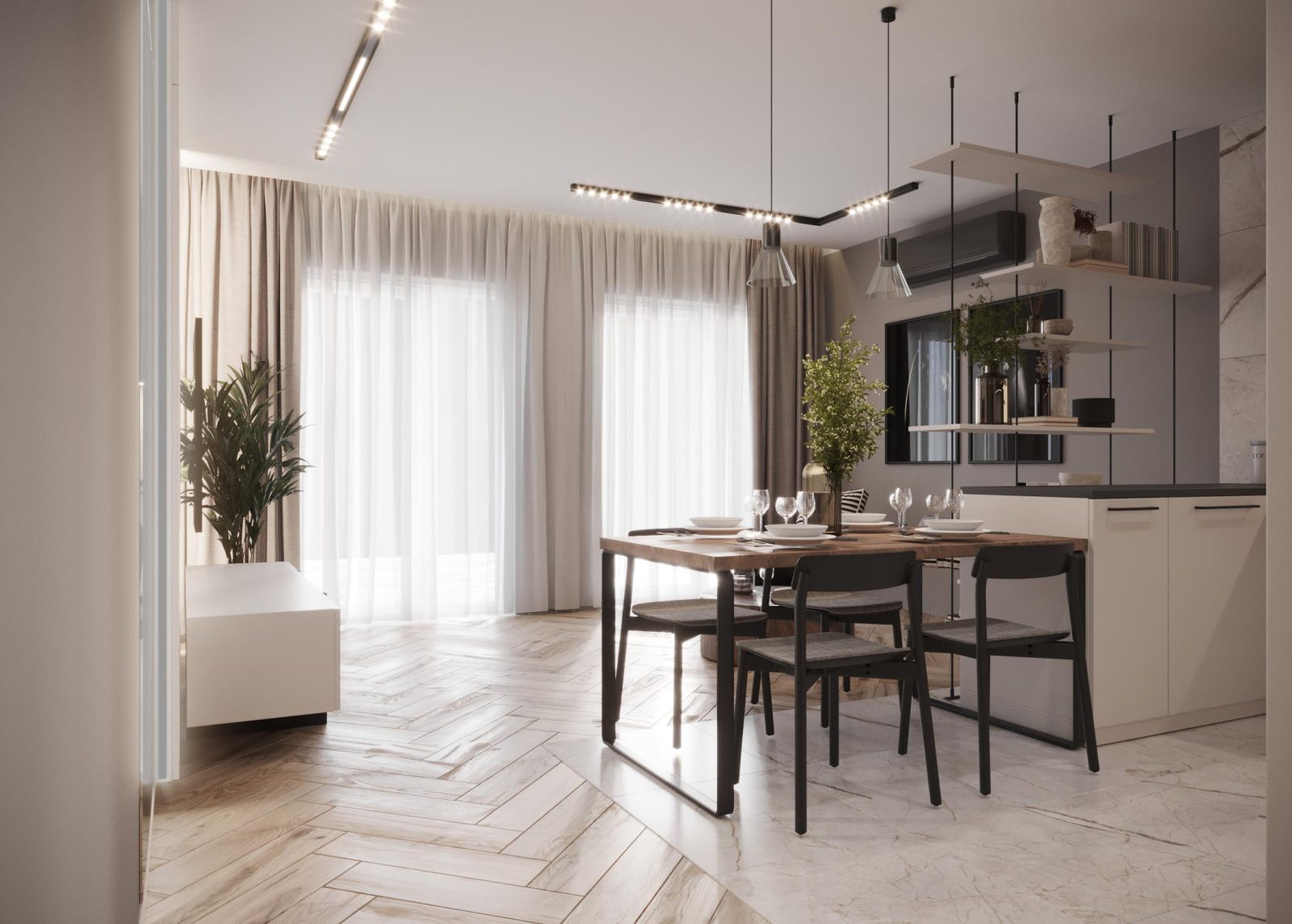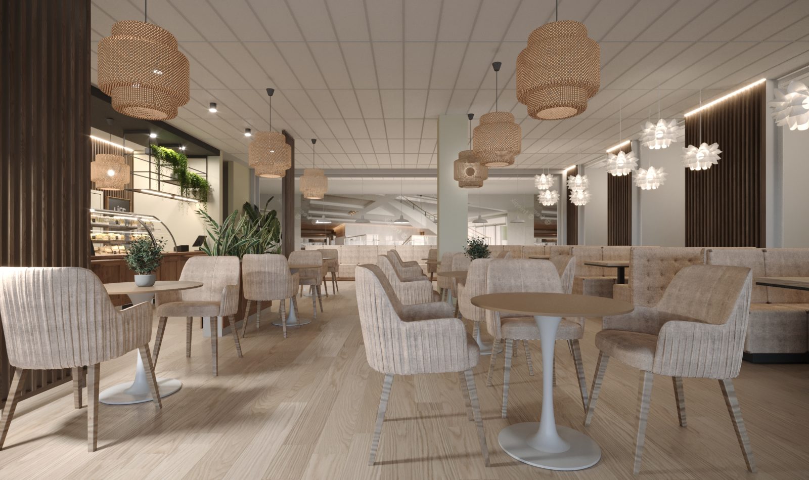 Mieszkanie dla studenta w odcieniach antracytu, beżu i drewna. Nowoczesne ale przytulne, miękkie i plastyczne materiały, zbalansowana kolorystyka. Niebawem – realistyczna sesja.