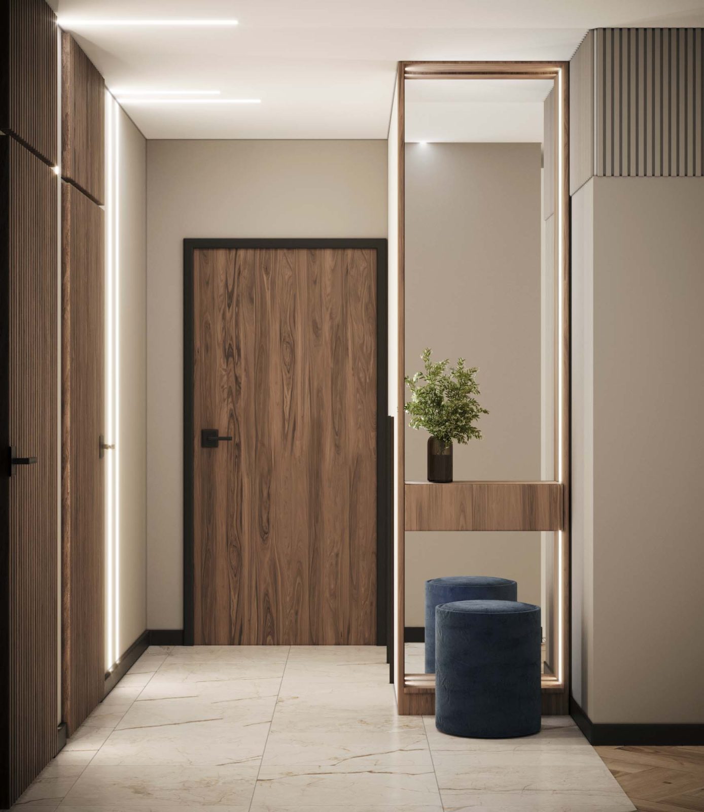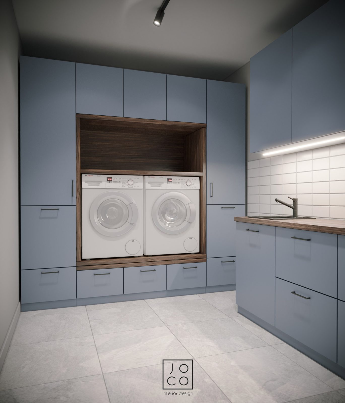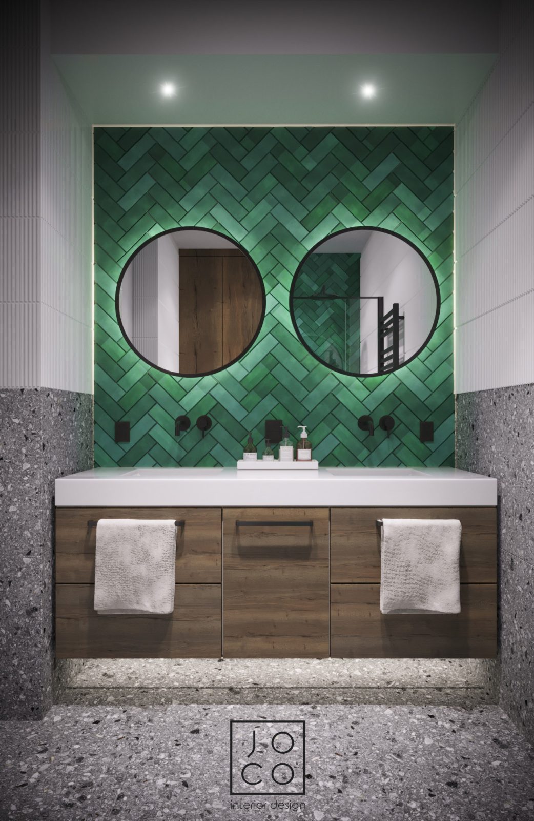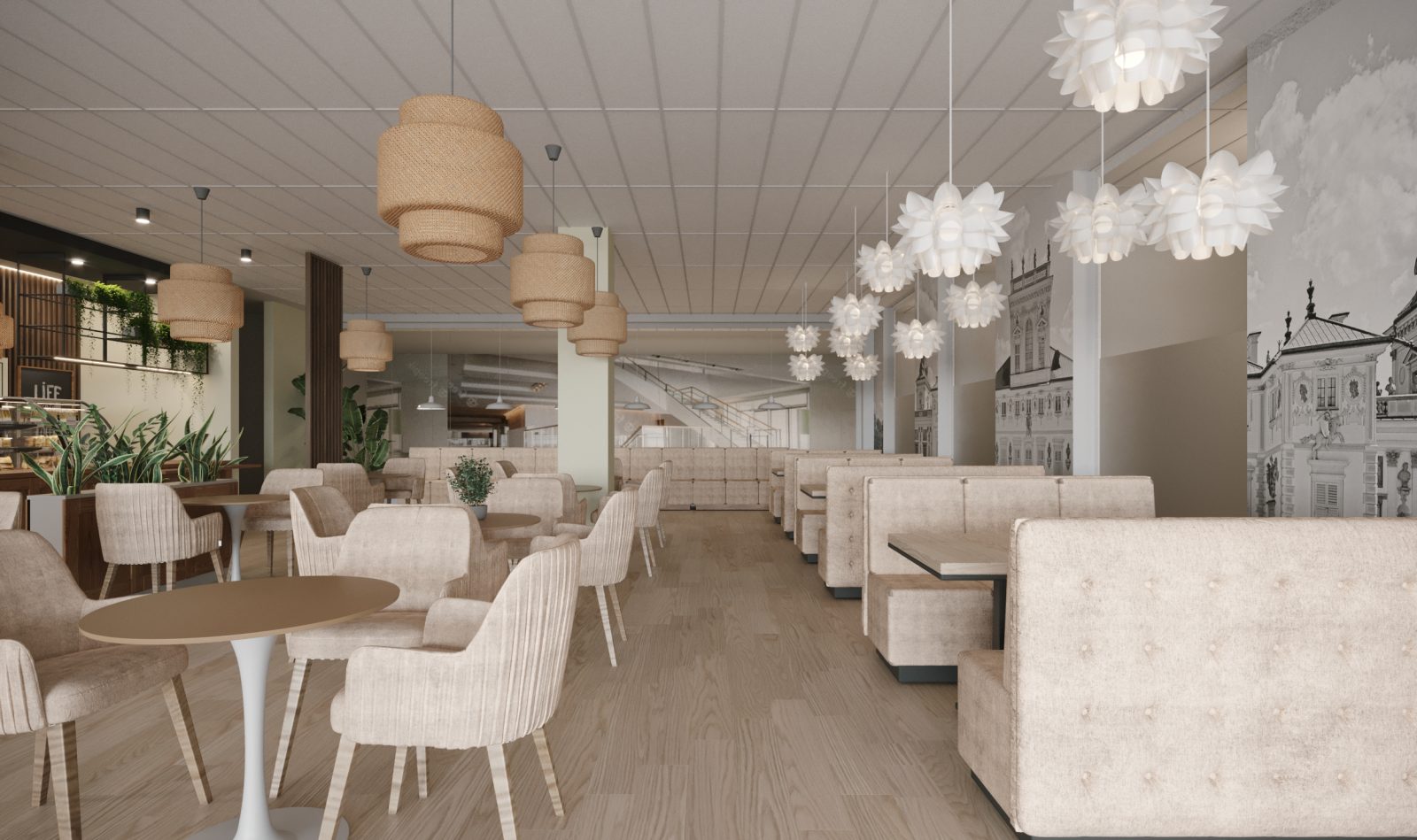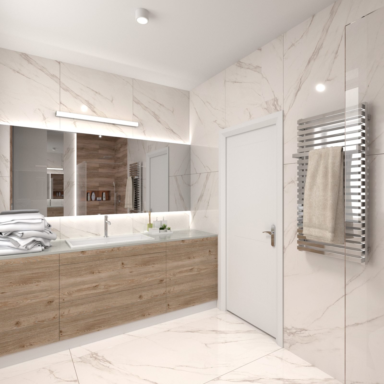 Mieszkanie dla studenta w odcieniach antracytu, beżu i drewna. Nowoczesne ale przytulne, miękkie i plastyczne materiały, zbalansowana kolorystyka. Niebawem – realistyczna sesja.