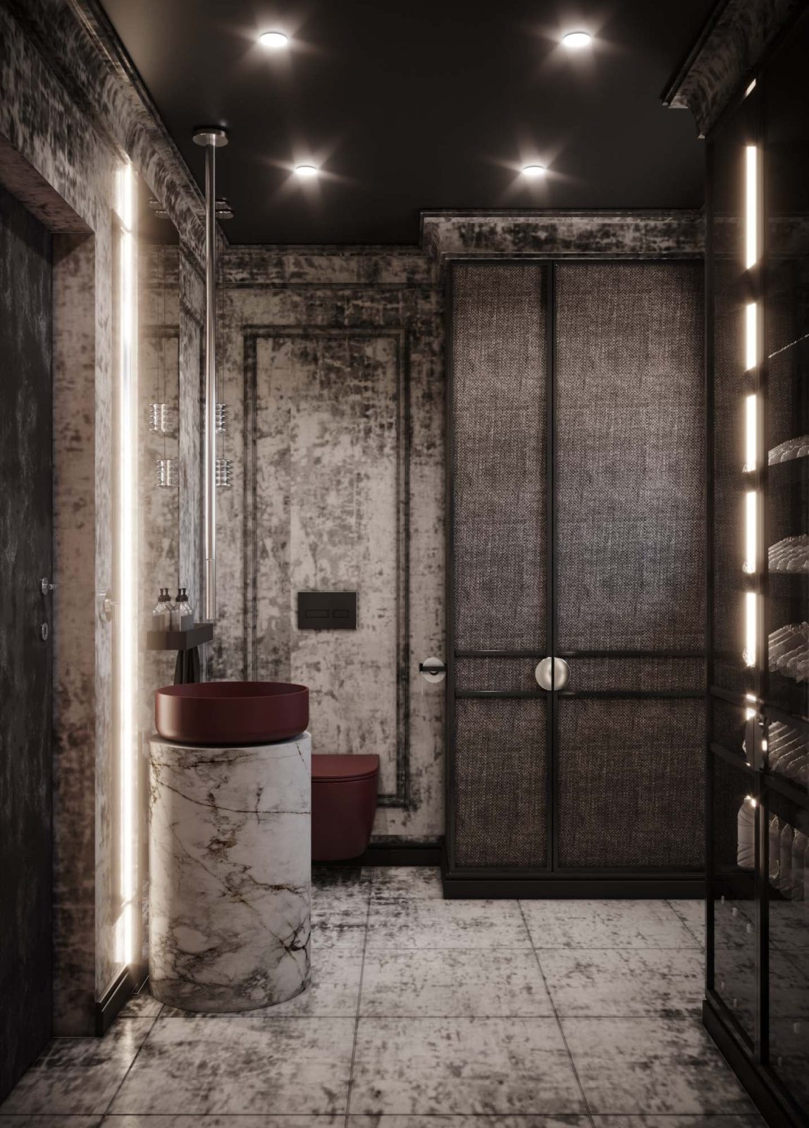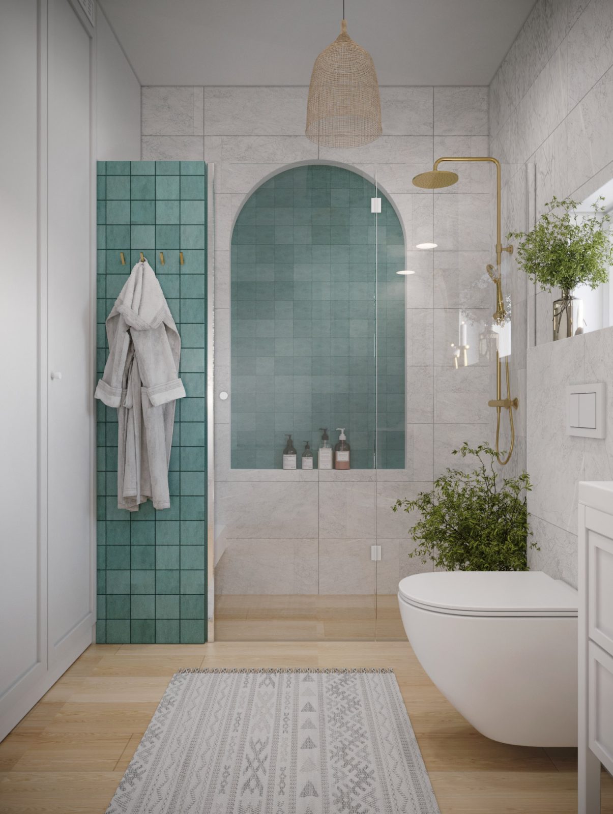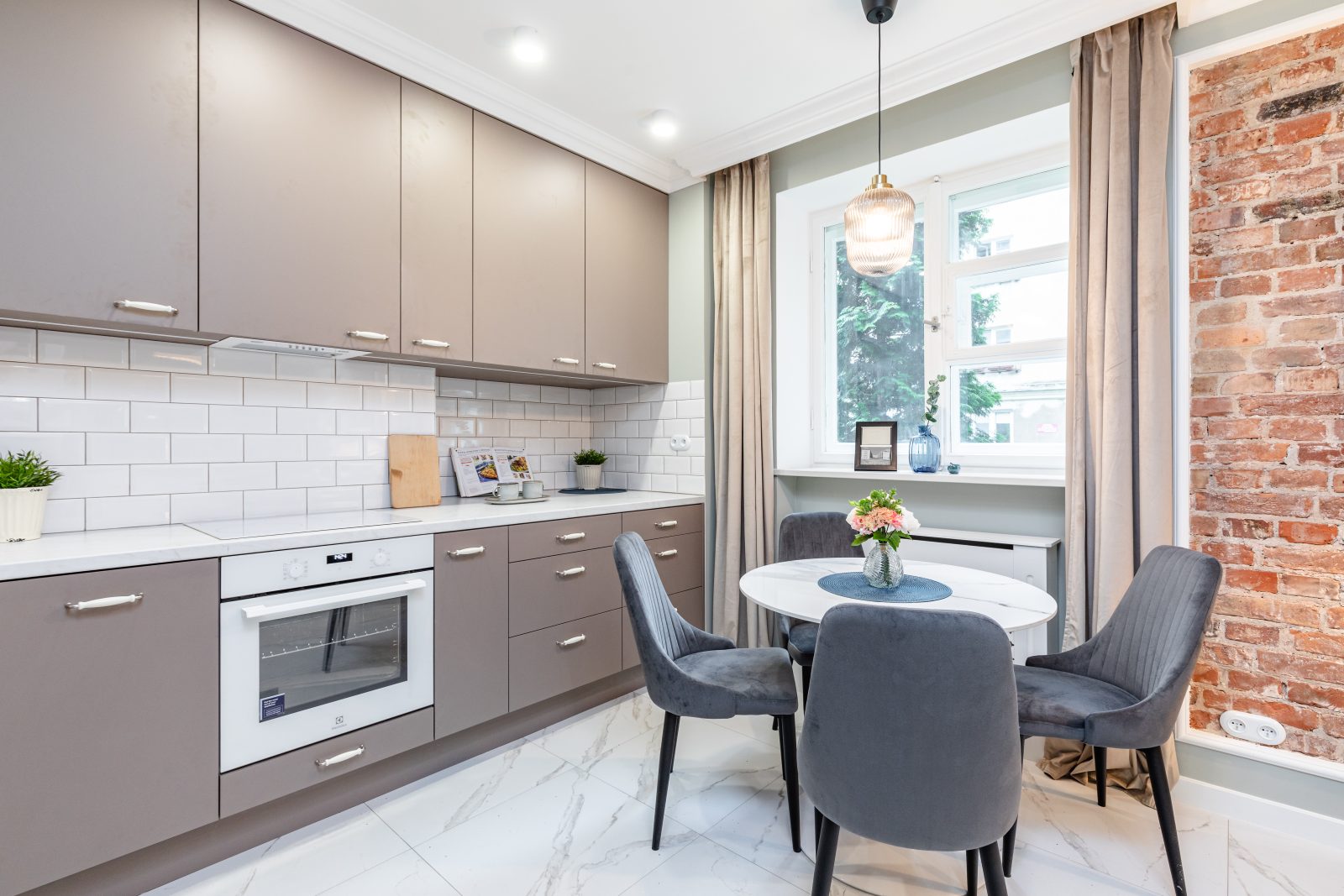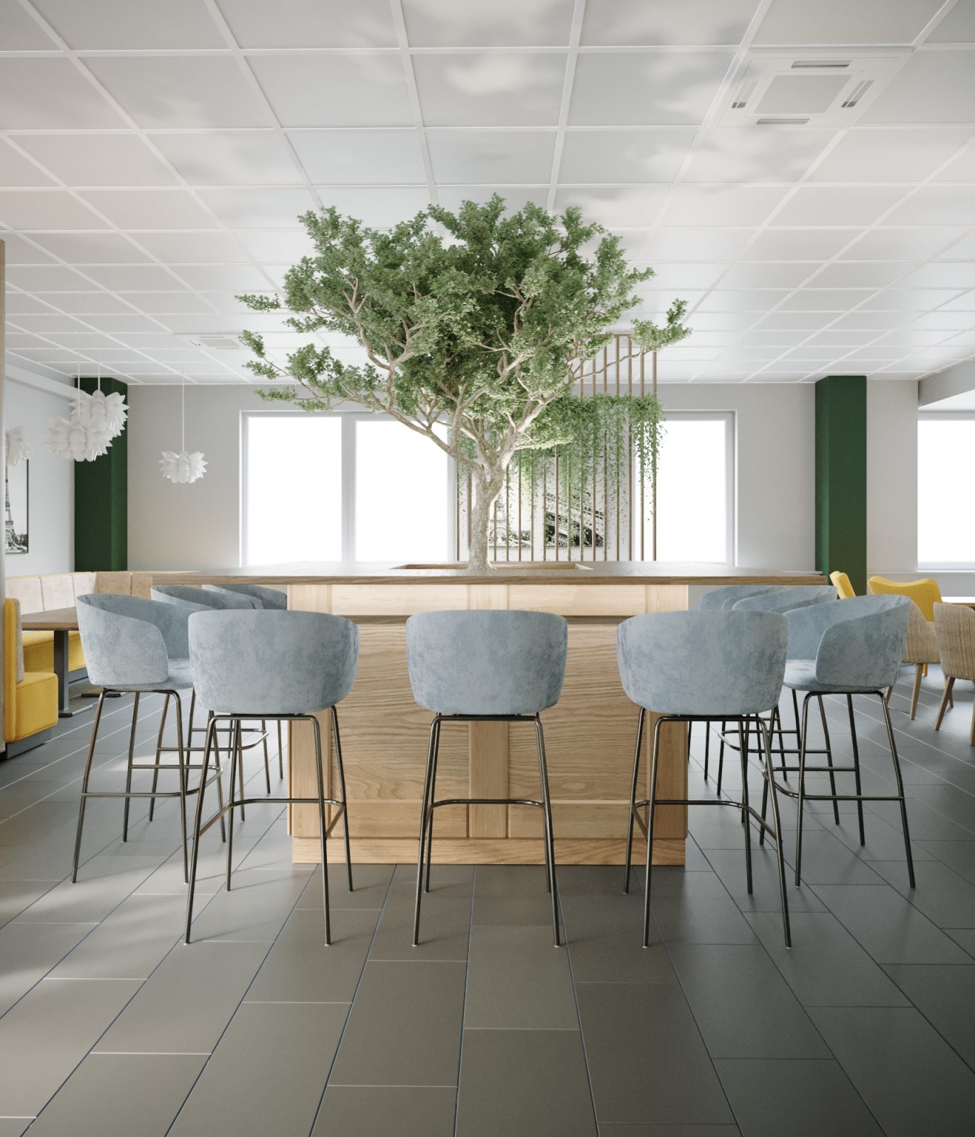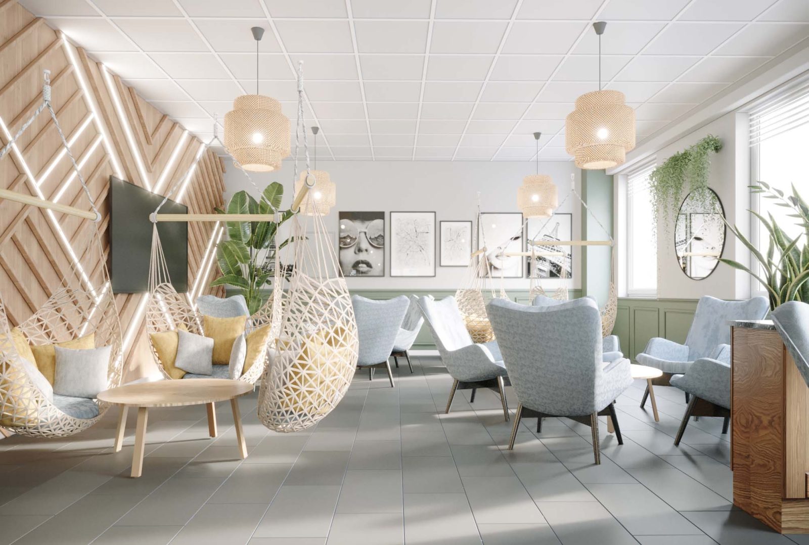 Mieszkanie dla studenta w odcieniach antracytu, beżu i drewna. Nowoczesne ale przytulne, miękkie i plastyczne materiały, zbalansowana kolorystyka. Niebawem – realistyczna sesja.